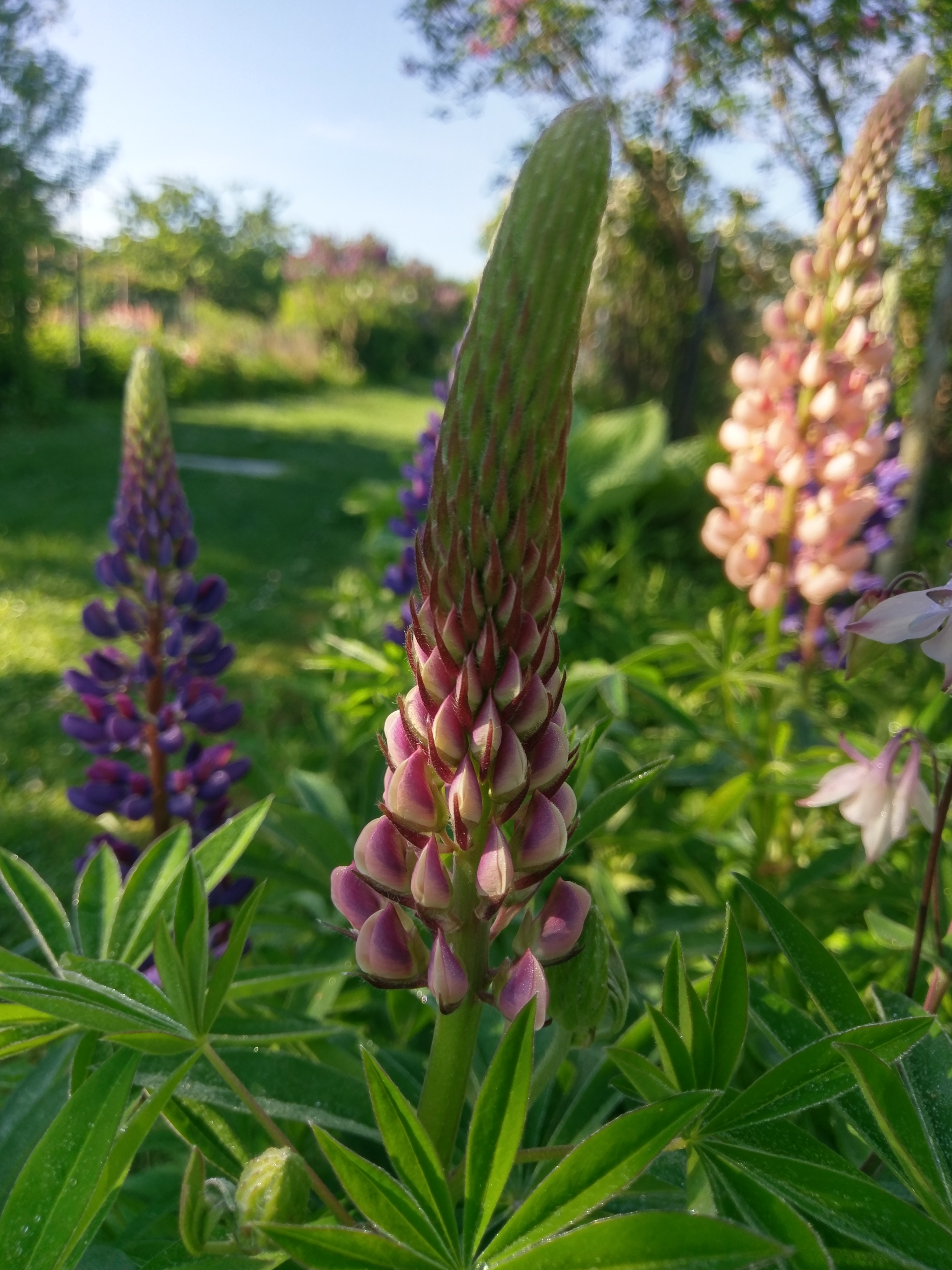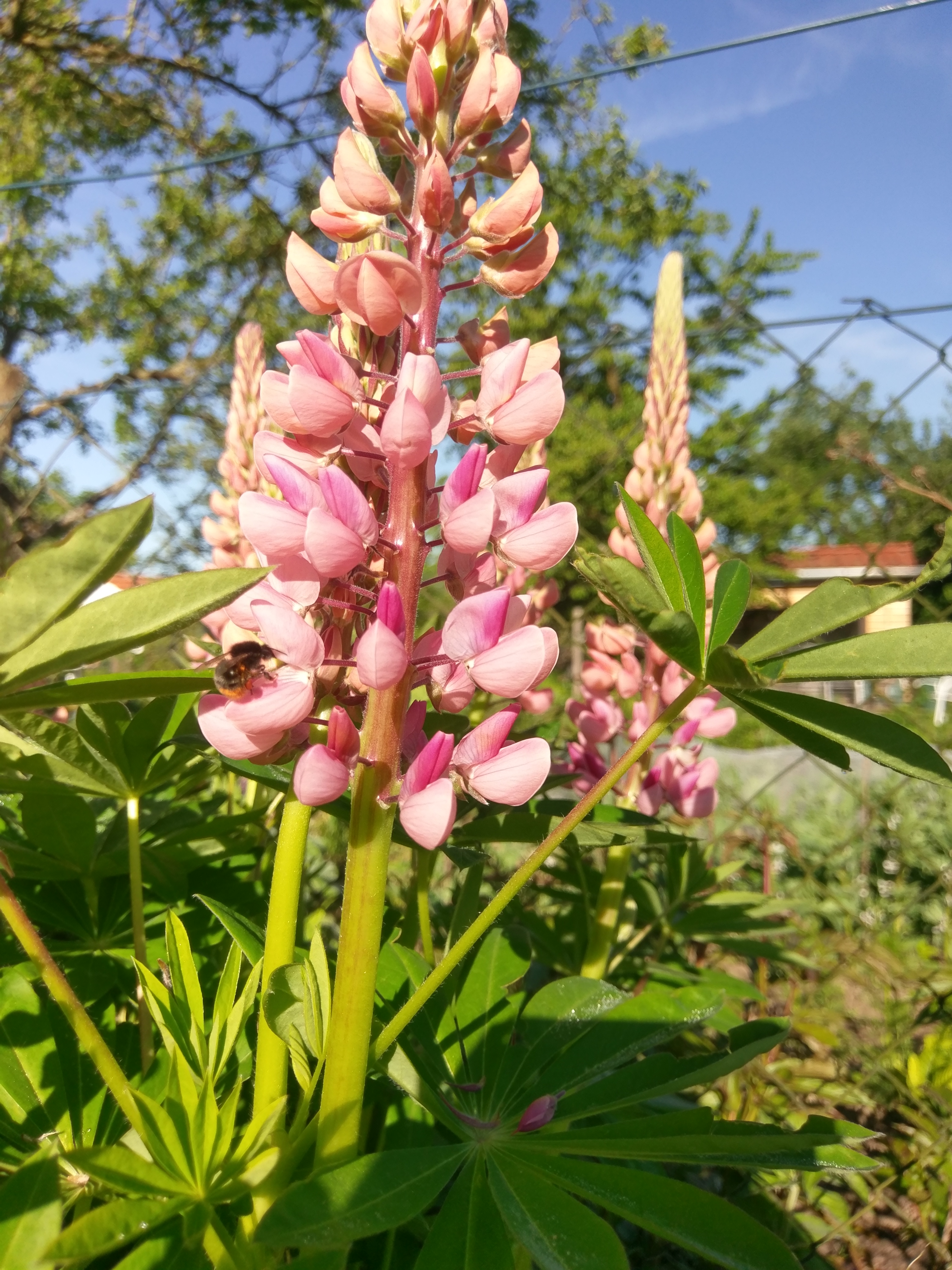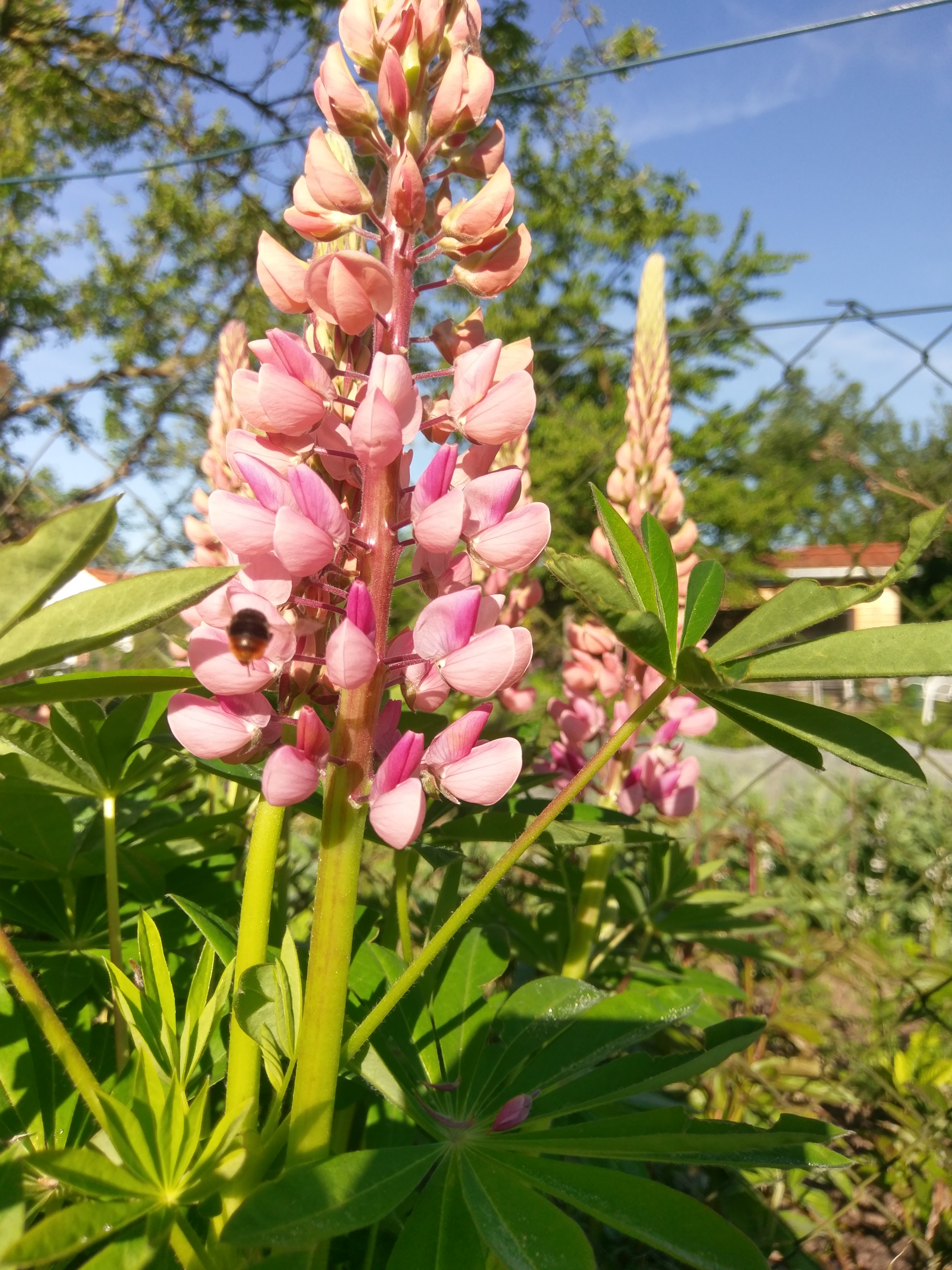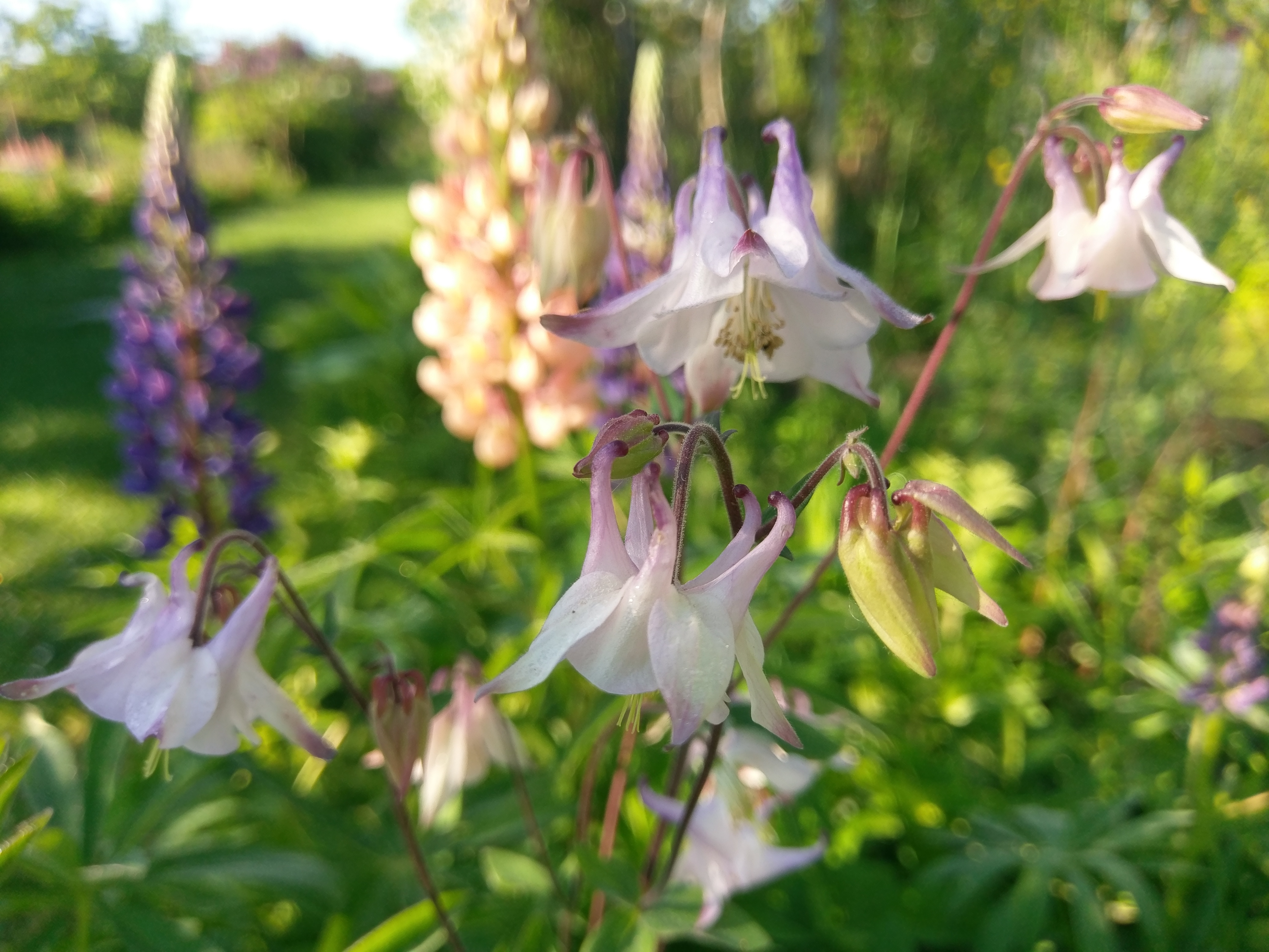 Die Akelei (5 „Sporne“ also diese Hütchen bei den Blütenblättern) ist ein Hummelliebling der freudig hybridisiert – sich also mit durch Züchtung veränderten Sorten mischt (via Pollen an den begeisterten Hummeln). Deshalb ist die originale, wilde Akei (intensiv blau, ungefüllt, ohne Farbverlauf) bedroht.