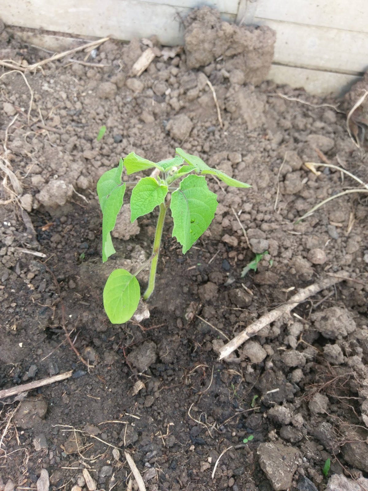 Lady Physalis die Große (kleine Physalis, größere Blätter – die ungeteilten Blätter) (F1 Hybrid also gemischtes Erbgut von den Eltern – daher würden die Tochterpflanzen andere Merkmale tragen, weil sich die Merkmale wieder aufsplitten – Grüße an die Mendelsche Erblehre – somit kommemde Samen in der Frucht nicht zum neue Pflanze ziehen geeignet )