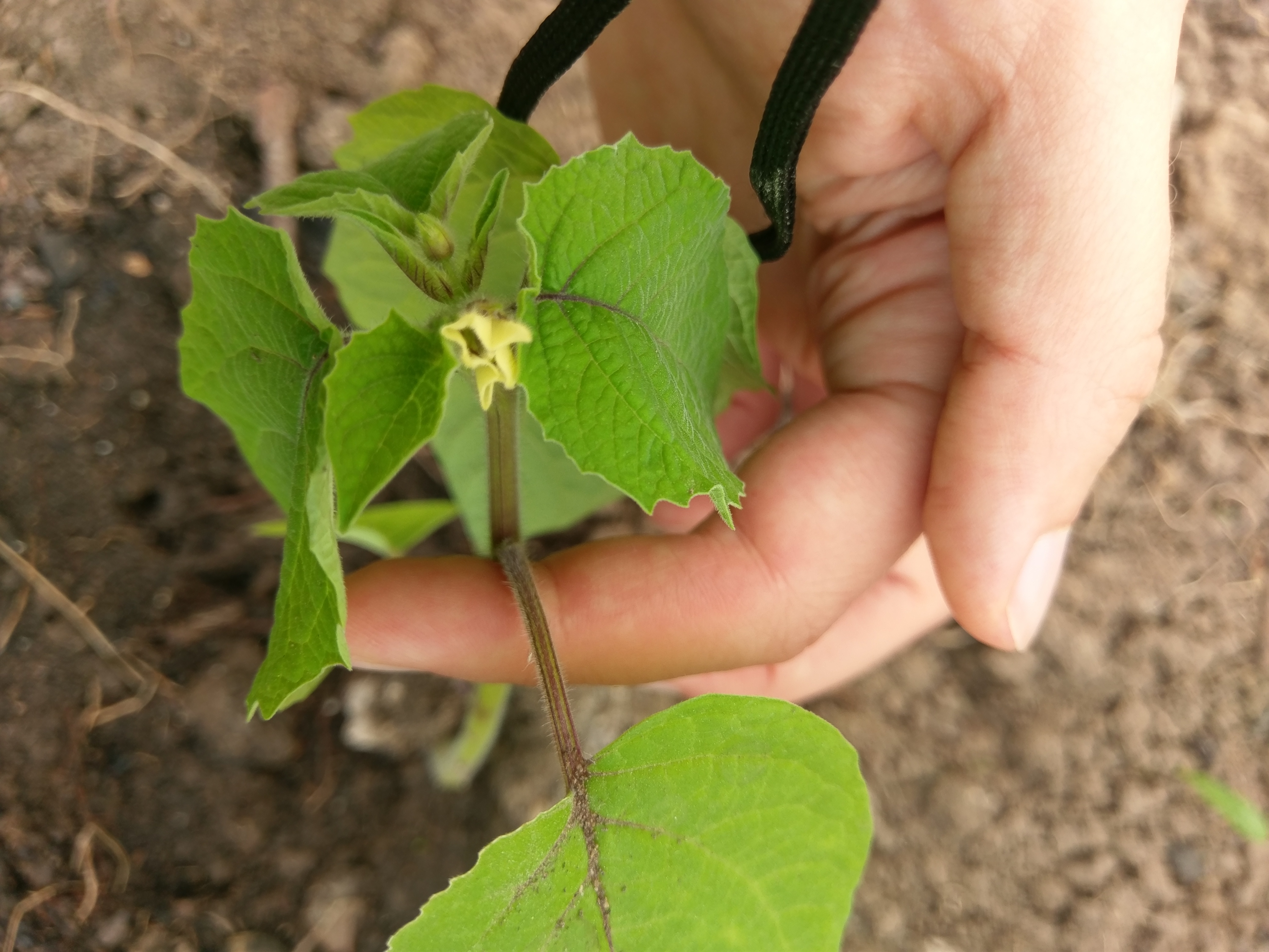 Von den pflanzlichen Hoheiten (Tomaten- und Physalis-Pflanzen, die ich aus Samen gezogen habe) hat Phy als erste eine Blüte ❤ 😀