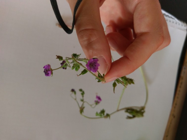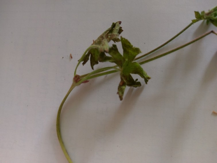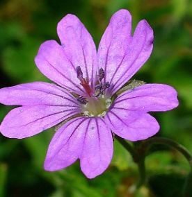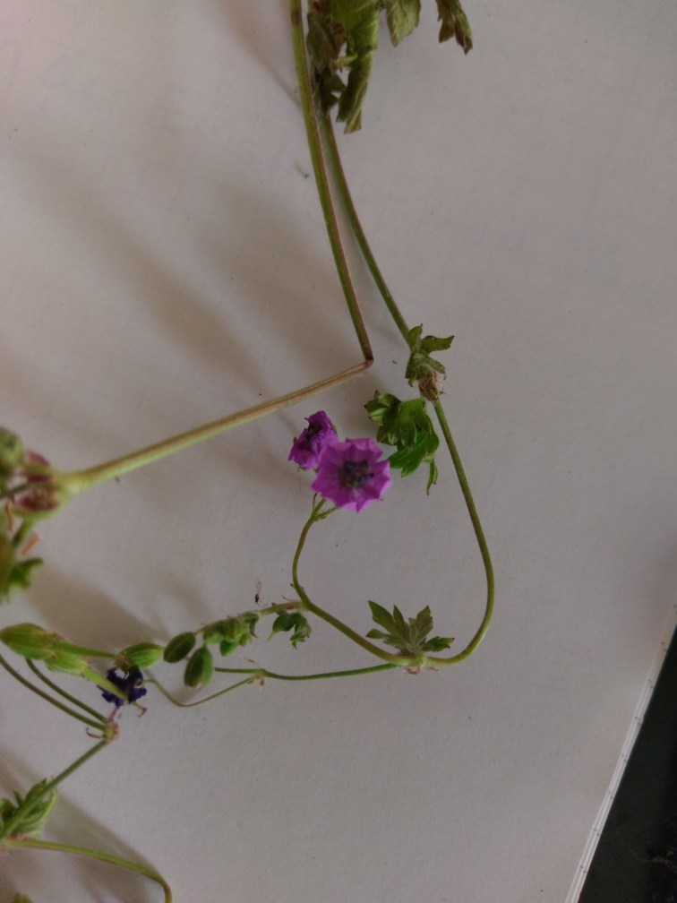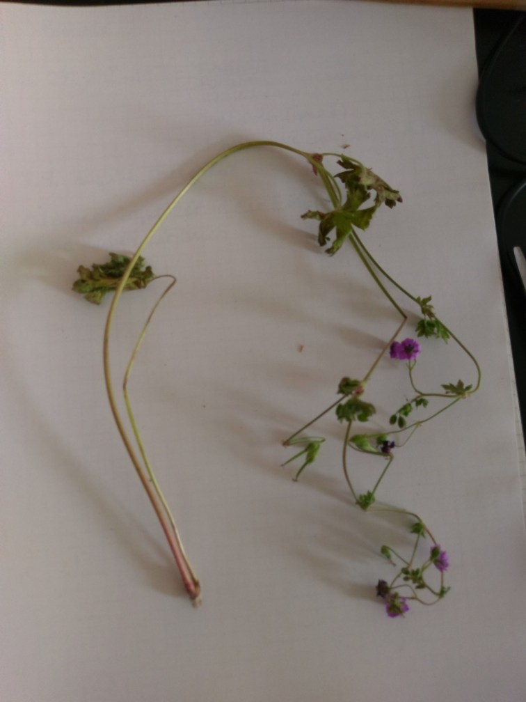 Pyrenäen-Storchschnabel (Geranium pyrenaicum BURM.F.). Die Frucht sieht aus wie ein Storchenkopf und so kann man auf einen Storchschnabel tippen. Storchschnäbel haben genau 10 Staubgefäße (männlicher Blütenteil – endet in Pollensäcken).