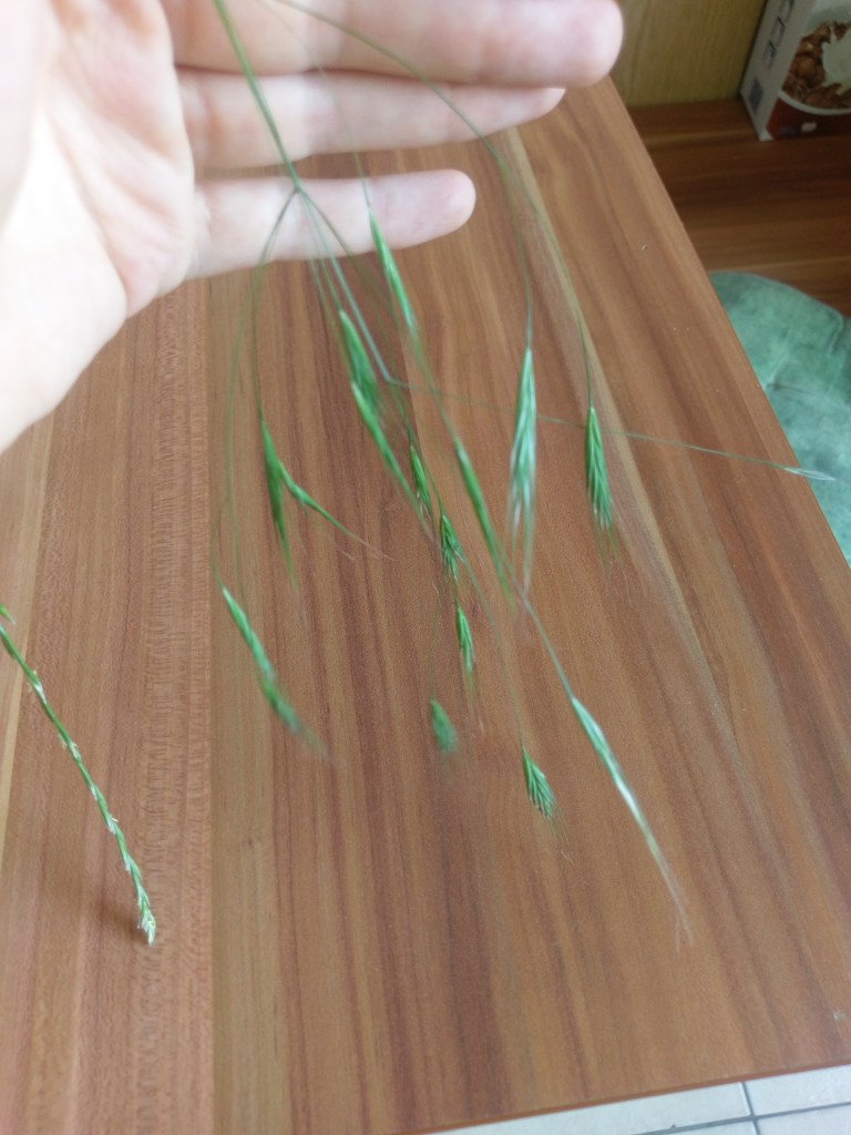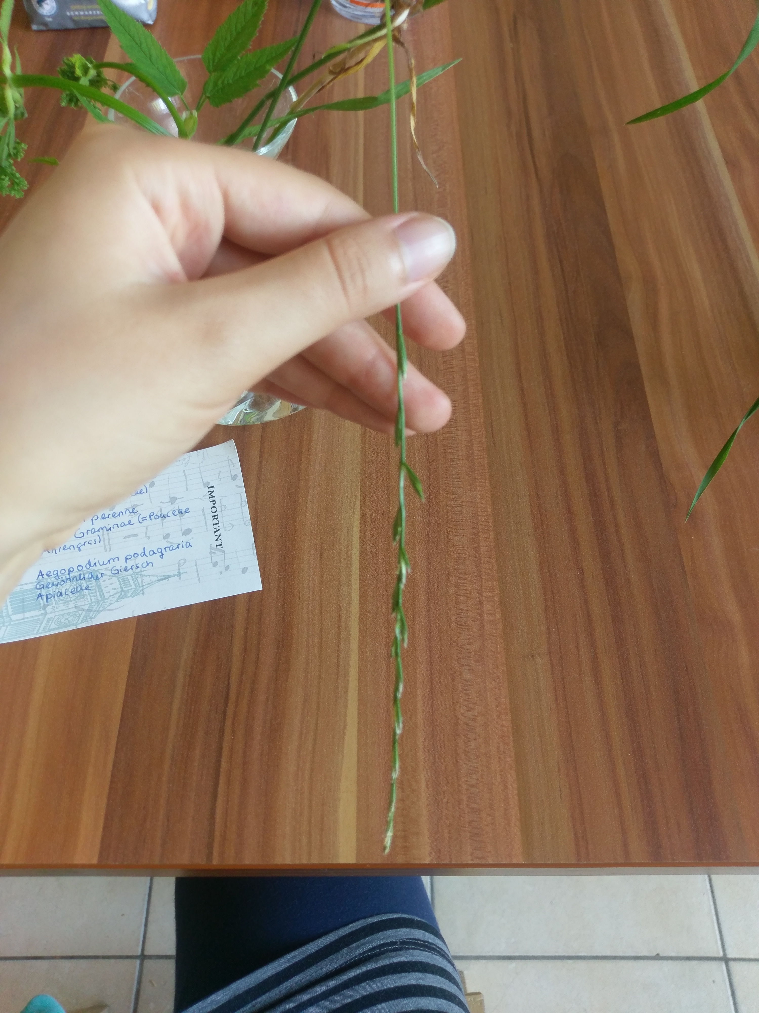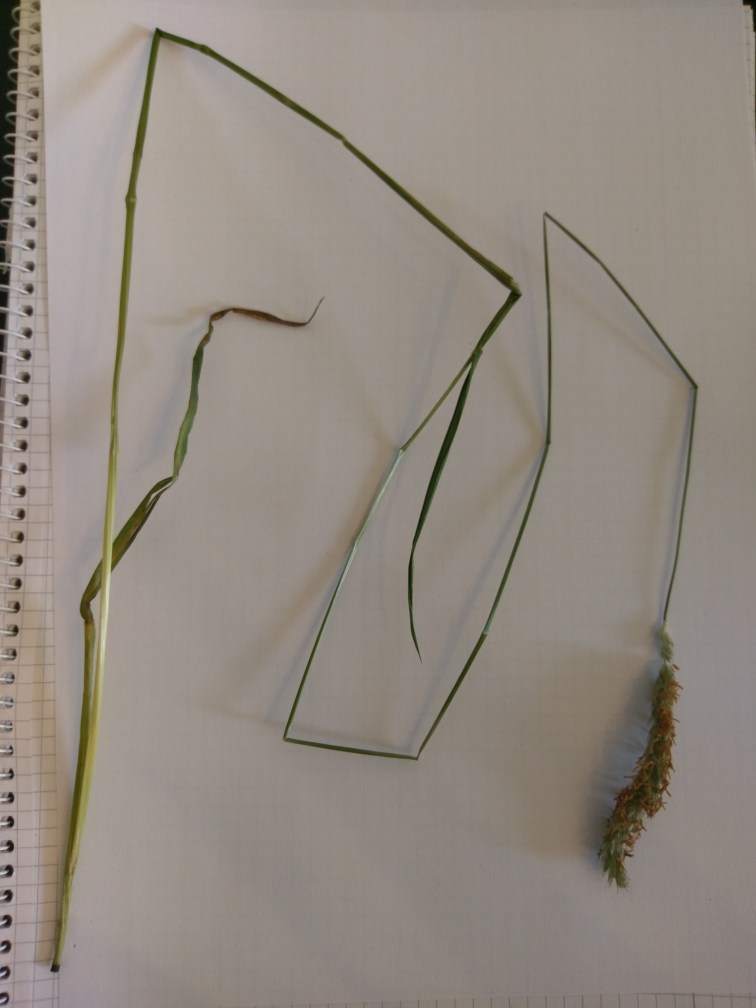 Wiesen-Fuchsschwanz, blühend vom 7.6.21. Alopecurus pratensis L. Aus der Familie Poaceae (also Süßgräser – Erkennung: Stängel nicht dreieckig, sondern rund. In der Regel ist der Stängel (bzw. „Halm“) hohl, also nicht mit mark gefüllt. Es gibt meistens Knoten im Halm (auf schlau: „Nodien“). Wenn man am Halm die Blätter ein bisschen herunterzieht, kommt ein Häutchen namens Ligula zum Vorschein, das zum Bestimmen wichtig sein kann (zum Beispiel um Poa trivialis und Poa pratensis zu unterscheiden)