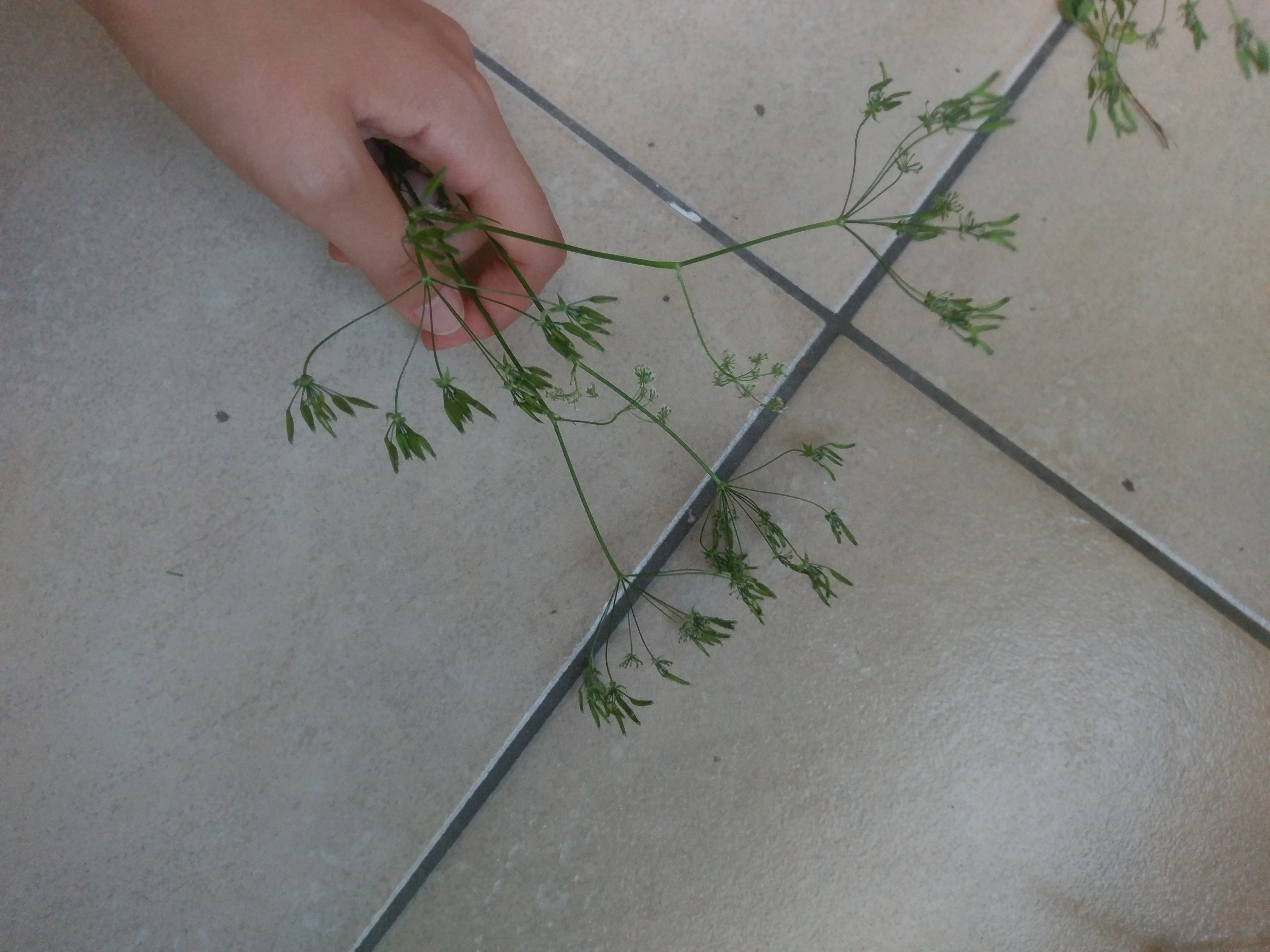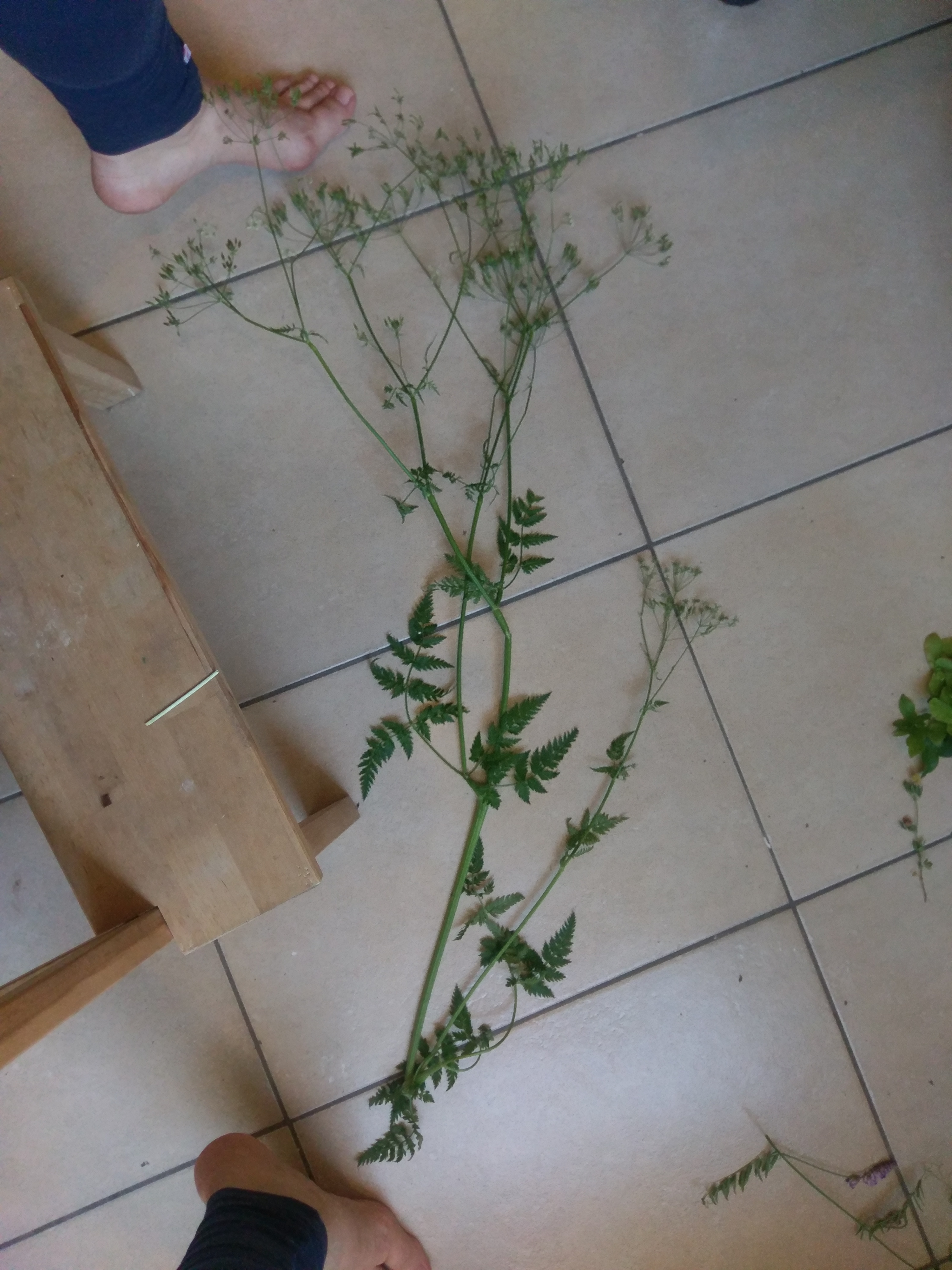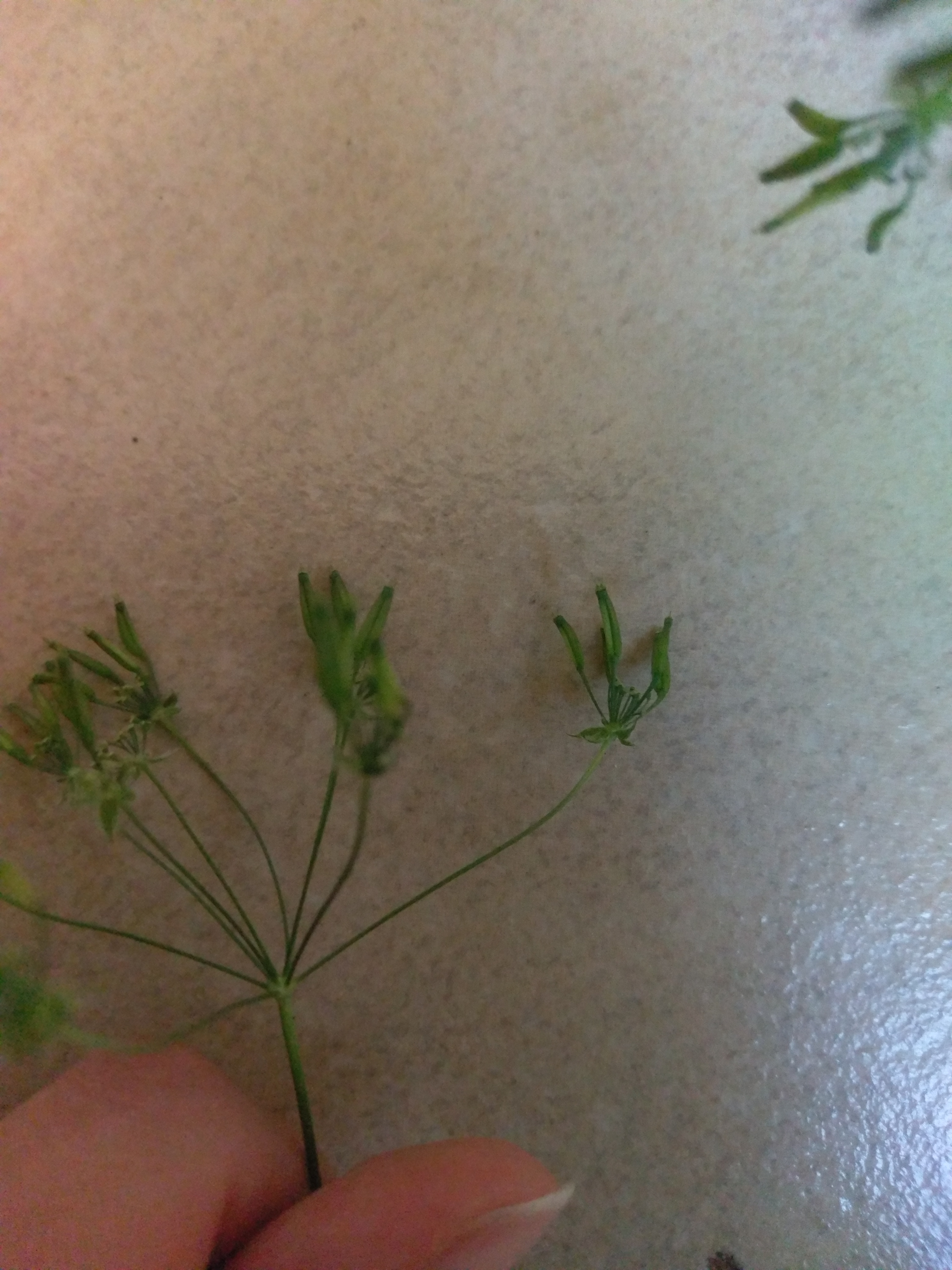 Wiesenkerbel. Großer (bis 1m20) Doldenblütler (Apiaceae) mit stark gefiederten Blättern, der jetzt (14.06.2021) schon recht verblüht ist. Hüllchenblätter an den Döldchen vorhanden, sehe aber keine Hüllblätter an der Dolde. Gut für Bestäuber wie Käfer und Schwebfliegen.
