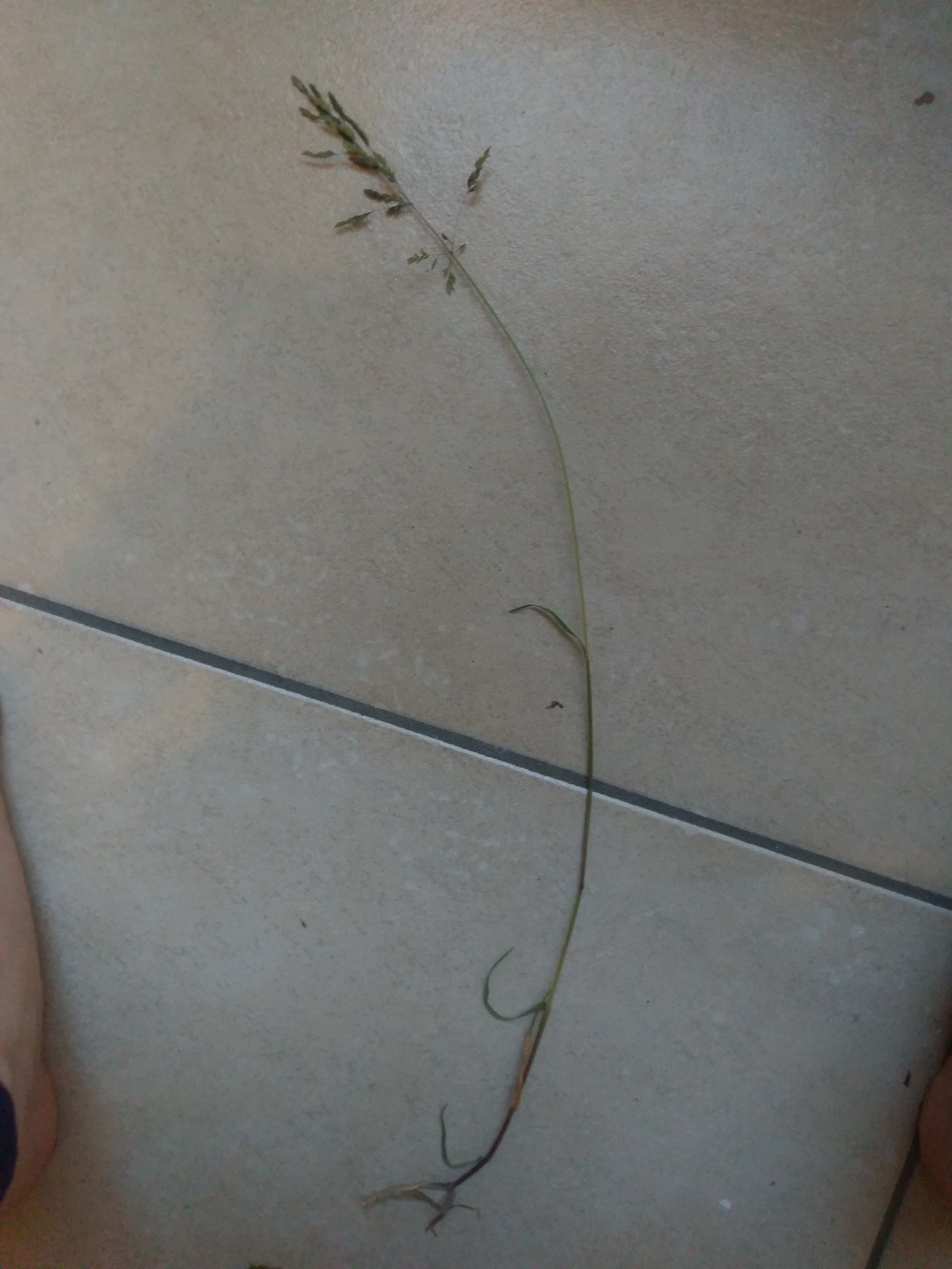 Poa trivialis weil lange Ligula (3mm). Ligula ist das Häutchen das man sieht wenn man das Blatt am Halm nach unten zieht. Poa pratensis sähe insgesamt sehr ähnlich aus, hat aber eine kürzere Ligula.