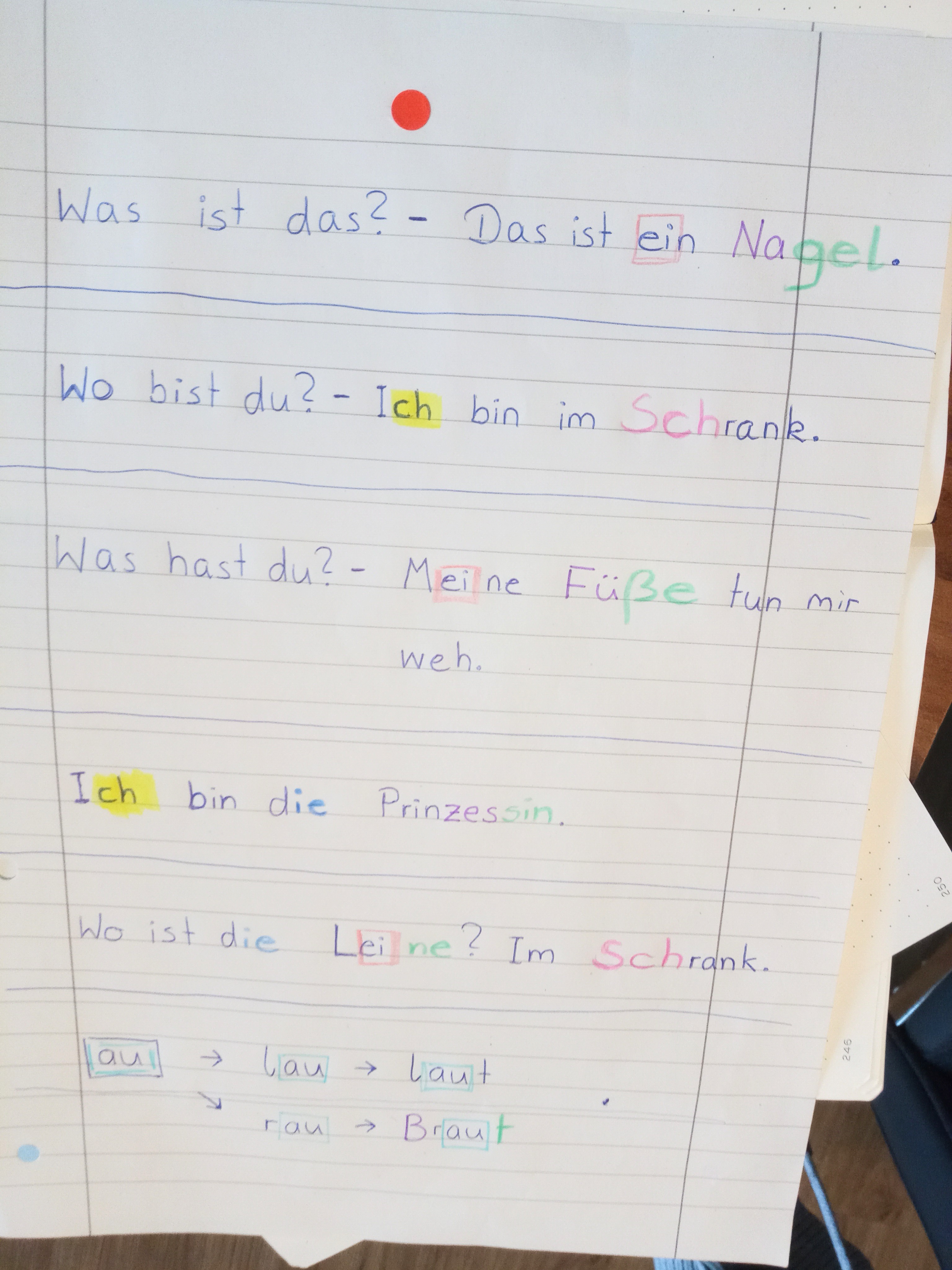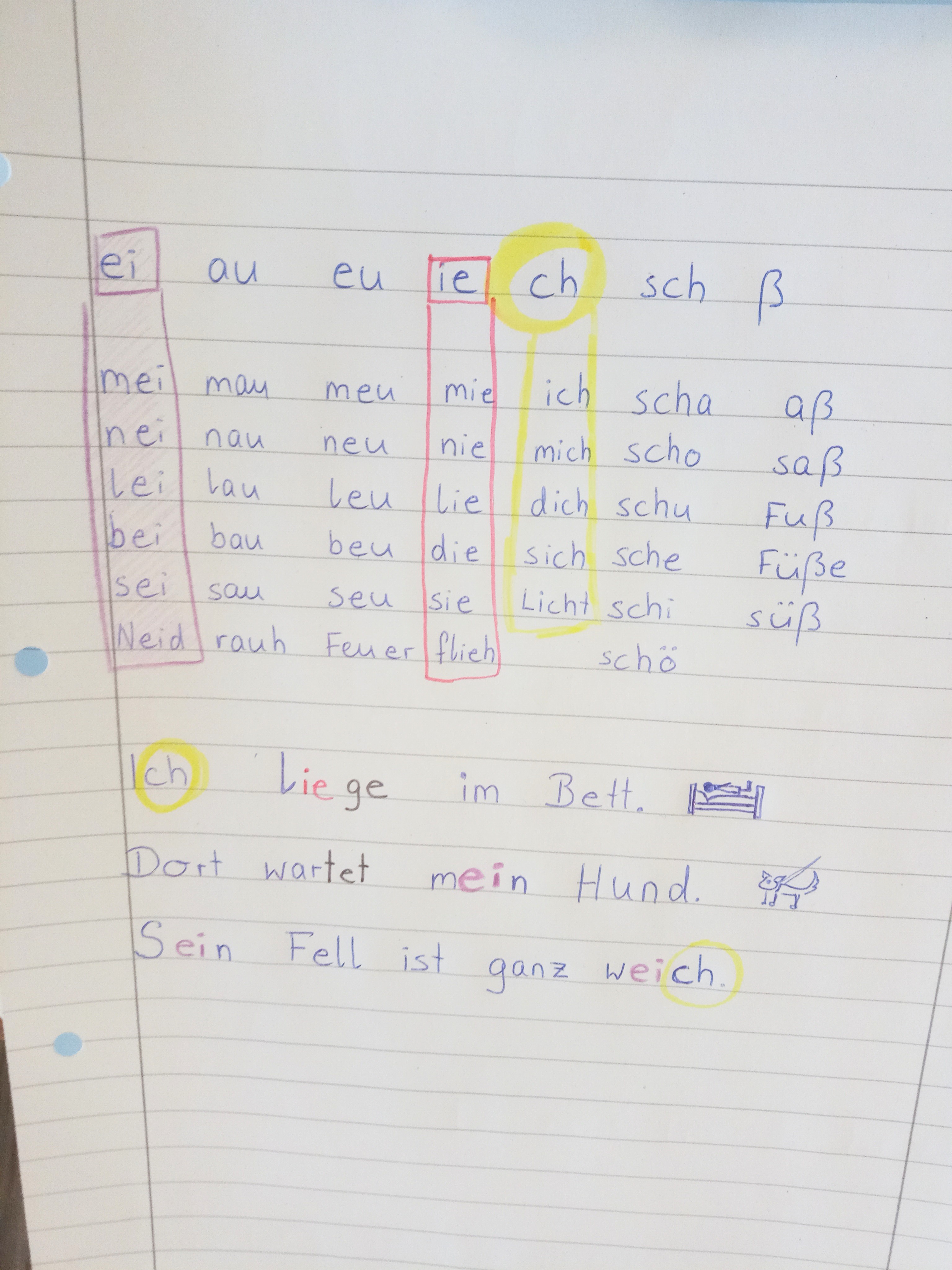 Die erste Stufe ist das richtige Benennen der Laute, die zu einem Buchstaben gehören oder zu einer Kombination wie ch, sch, ei, au usw.